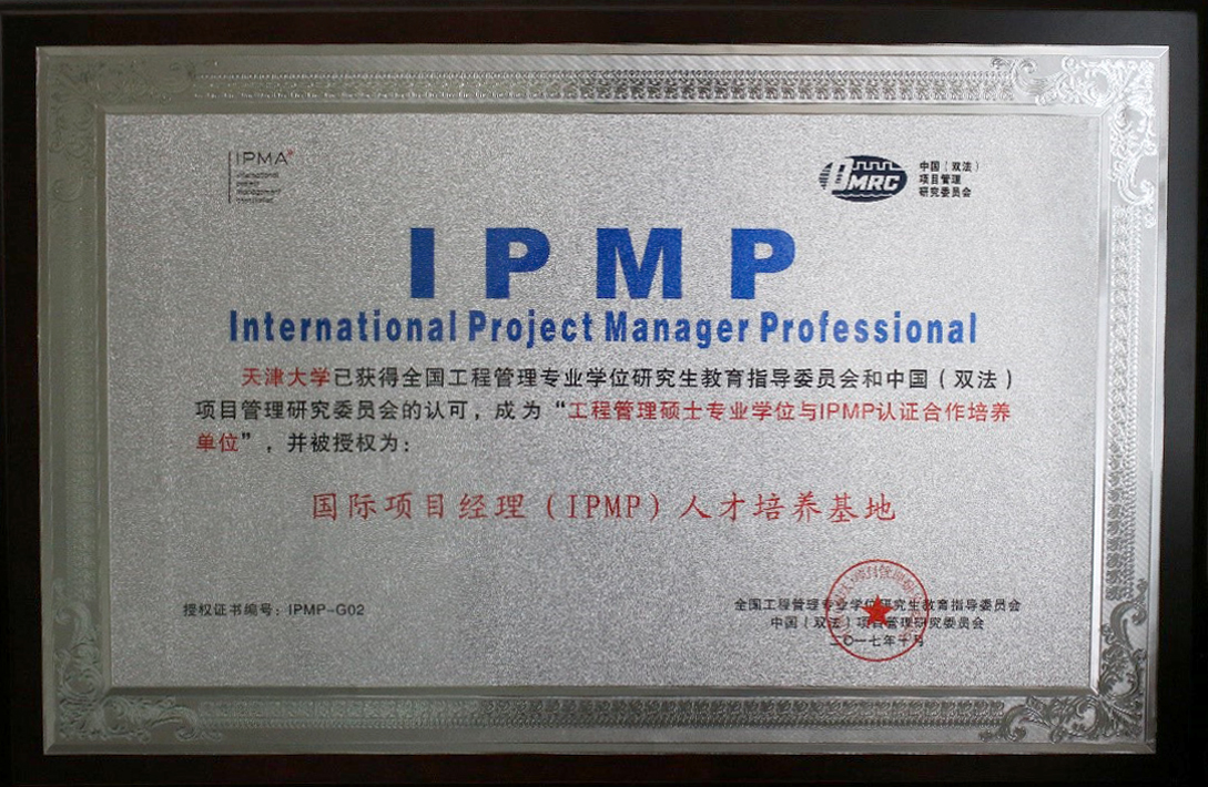 2017年9月25日,全国工程管理专业学位研究生教育指导委员会与中国(双法)项目管理研究委员会(PMRC)暨国际项目管理专业资质认证(IPMP)中国认证委员会,正式签订了关于工程管理硕士(MEM)与国际项目管理专业资质认证合作框架协议,经专家组评审,我校MEM入围首批获准开展IPMP认证的合作培养单位。
