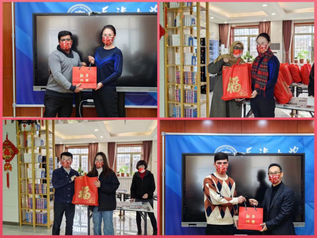上午十点整,北洋园校区留园宿舍与卫津路校区留学生宿舍同步开展新春慰问活动。副校长巩金龙首先代表学校向同学们致以新春问候,表示学校高度重视关心留学生工作,努力为天大留学生创造成长成才条件,祝愿大家能在求学路上平安顺利,学业有成。双校区领导老师与在场留学生亲切交谈,互相致以新春祝福。