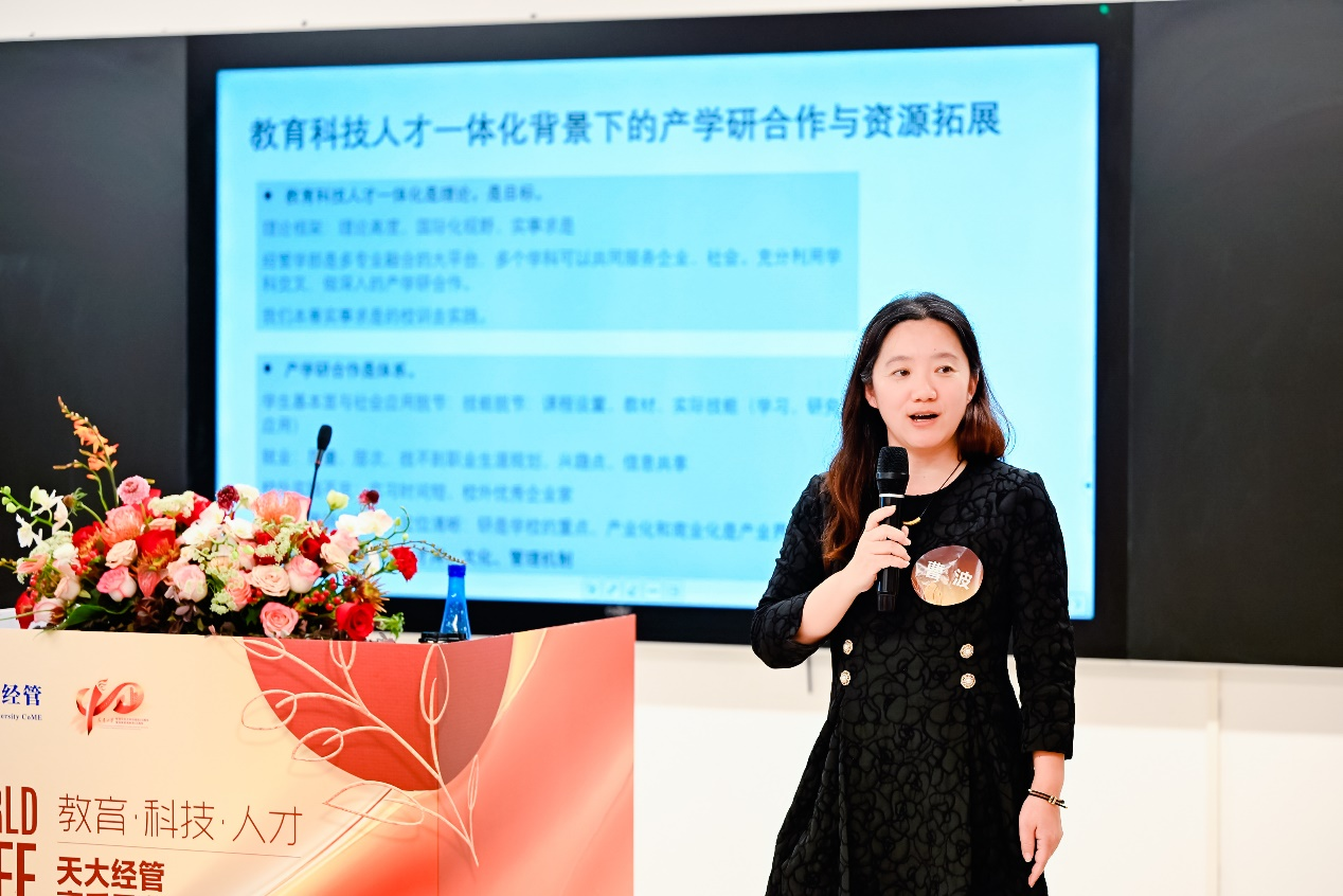 下午,World Cafe教育·科技·人才天大经管高质量发展研讨会在25教学楼召开。与会嘉宾分组就“教育科技人才一体化背景下的产学研合作与资源拓展”“数智时代下的经管学科专业重构与竞争优势重塑”“国际化视野下经管学部未来发展战略布局与发展前景”等议题展开热烈讨论。研讨会由管理与经济学部主任杜慧滨主持。