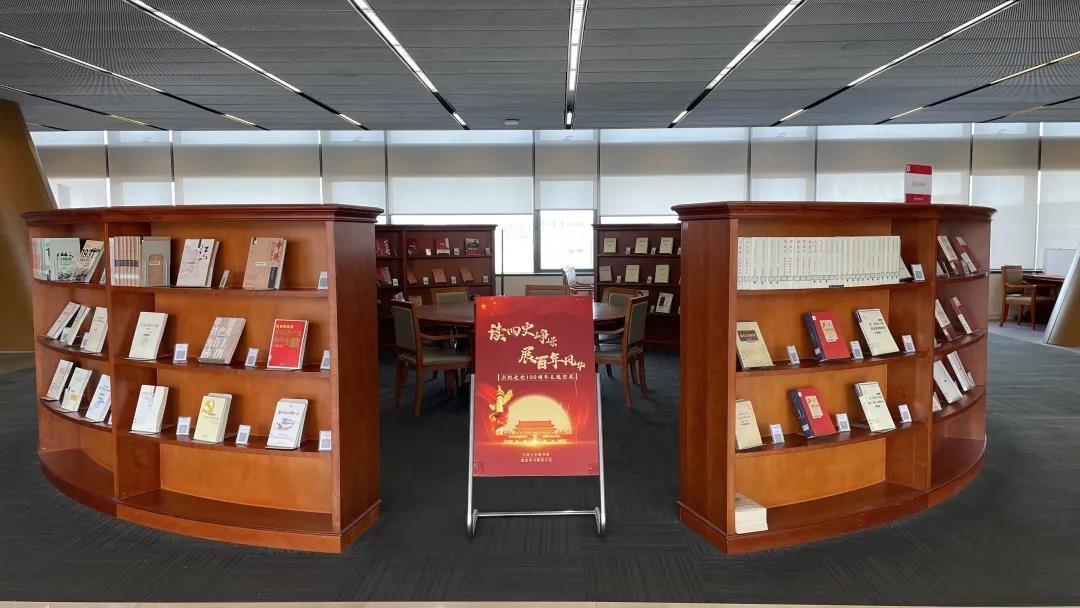图书馆在郑东图书馆四层开设党史学习教育专区,并举办庆祝建党100周年的主题书展活动。