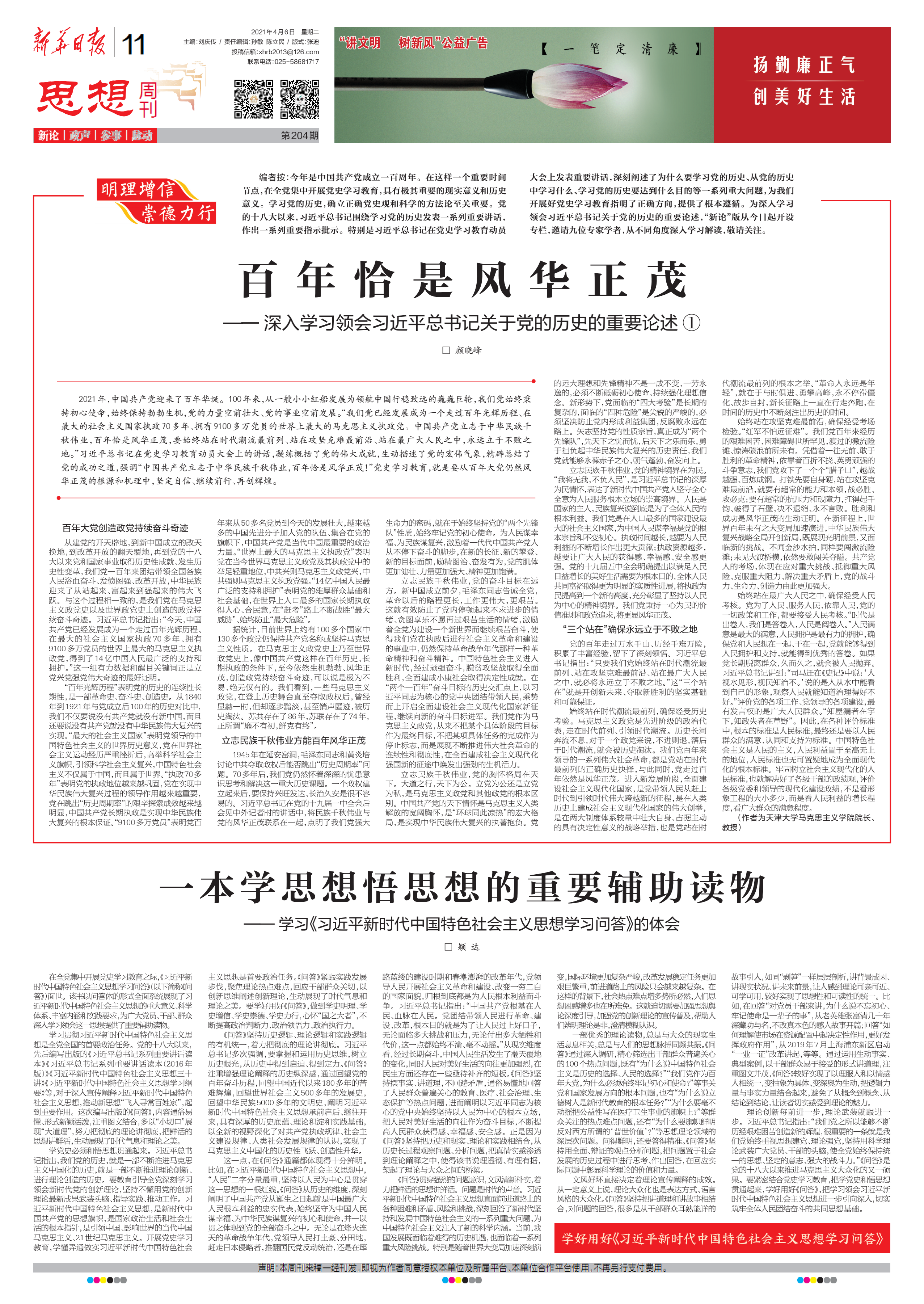 ——《百年恰是风华正茂—— 深入学习领会习近平总书记关于党的历史的重要论述 ①》 颜晓峰(作者为天津大学马克思主义学院院长、教授)