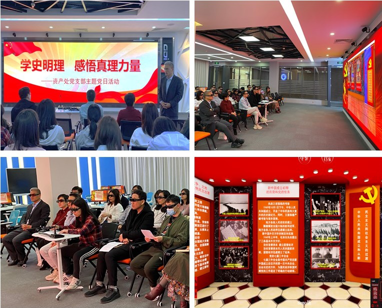为深入开展党史学习教育,4月2日下午,资产处党支部在北洋园校区第47教学楼虚拟现实实验教学中心,以“学史明理,感悟真理力量”为主题,组织全体党员和入党积极分子,参观利用虚拟现实技术(VR)搭建的《中国共产党的九十年》红色展览。