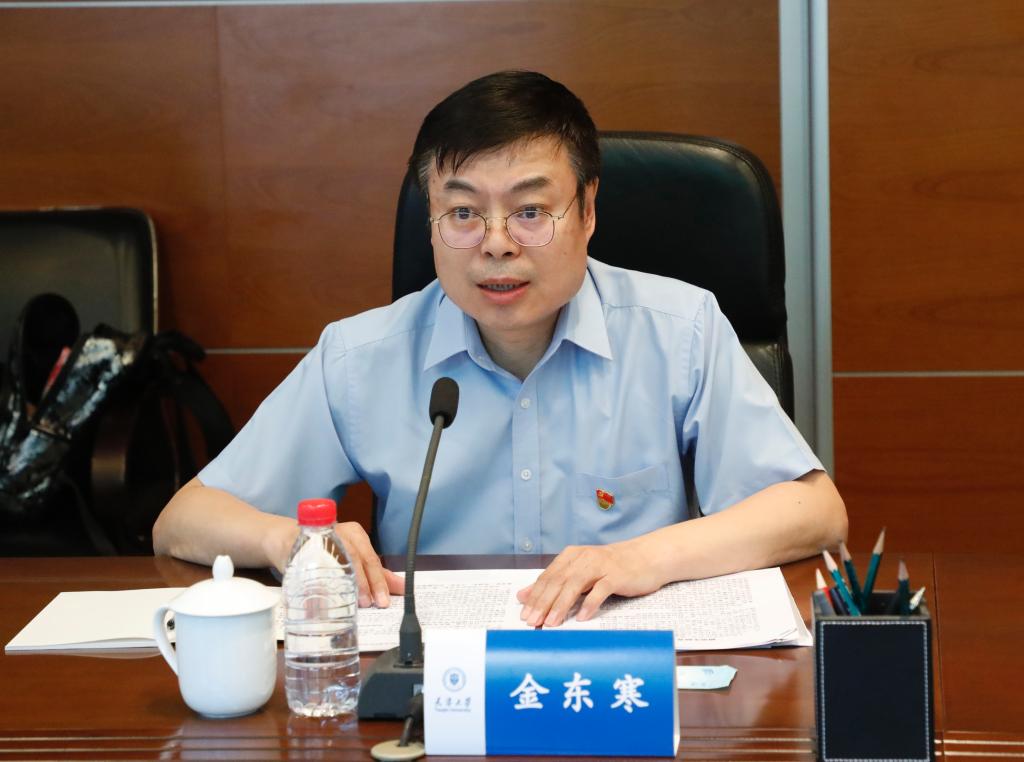 金东寒指出,要进一步深入学习贯彻习近平总书记“七一”重要讲话精神,扎实开展党史学习教育,全力推动党中央及教育部决策部署贯彻落实,切实做到用“四个意识”导航,用“四个自信”强基,用“两个维护”铸魂。把党的领导贯穿于办学治校、教书育人全过程,用实际行动体现出天大人的担当和责任,切实把党史学习教育成果融入工作实践,以真抓实干推动学校十四五开好局起好步,着力建设“中国特色、天大品格”的世界一流大学。