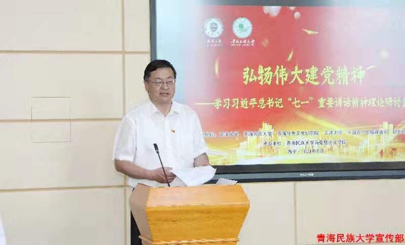 本站讯(图文 马克思主义学院)7月21日,由天津大学、青海民族大学、青海红色文化研究院、天津大学“中国共产党精神谱系”研究中心共同主办,青海民族大学马克思主义学院承办的弘扬伟大建党精神——学习习近平总书记“七一”重要讲话精神理论研讨会在青海民族大学马克思主义学院举行。来自武汉大学、教育部社科中心、天津大学、青海民族大学的70余名专家学者,深入学习习近平总书记“七一”重要讲话精神,共同回顾中国共产党百年伟大建党精神的发展历程,并围绕领会阐释伟大建党精神的深刻内涵和时代价值展开研讨和交流。