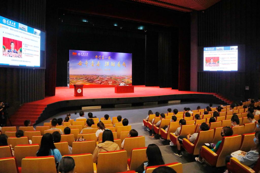 本次开学第一课采用主会场+分会场+线上直播相结合的方式,以北洋园校区求实会堂为主会场,在双校区各学院(部)设分会场,通过线上观看同步聆听开学第一课,近6万人次在线观看了课程。