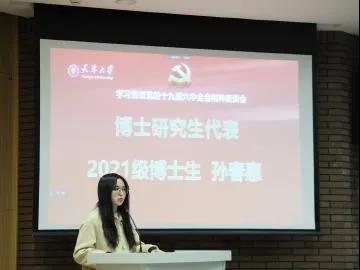 李丽副教授以《用党的百年奋斗史激励新时代青年爱国力行——学习党的十九届六中全会精神》为题进行发言。她认为,党和人民的事业发展需要一代又一代中国共产党人的接续奋斗,必须抓好后继有人这个根本大计。所以,我们既不能忘记昨天的苦难辉煌,做到以史为鉴,总结失败经验,又要无愧今天的使命担当,以更加昂扬的姿态迈进新征程。