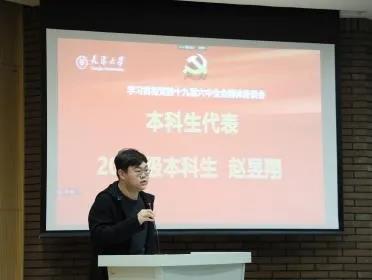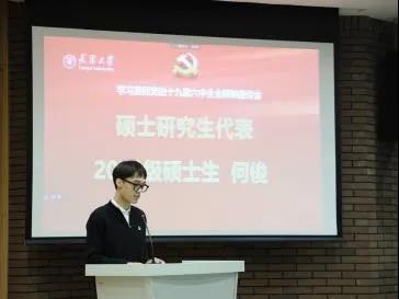 学院2020级本科生代表赵昱翔认为学党史要坚持宏大叙事,要有理论视野和理论沿袭,要坚持经世致用的现实主义原则。2021级硕士研究生代表何俊说,《决议》彰显了马克思主义基本原理的真理光芒,要深刻理解党百年奋斗的历史进程,并呼吁青年学生要有家国情怀,做一名合格的社会主义接班人。2021级博士研究生孙春惠紧紧围绕习近平总书记所讲的“大历史观”展开分析,认为“大历史观”之所以“大”,是因为习近平总书记是从社会主义发展史的角度论述了实现中华民族伟大复兴的历史必然性,并呼吁青年学生牢记使命,勇于奋斗。