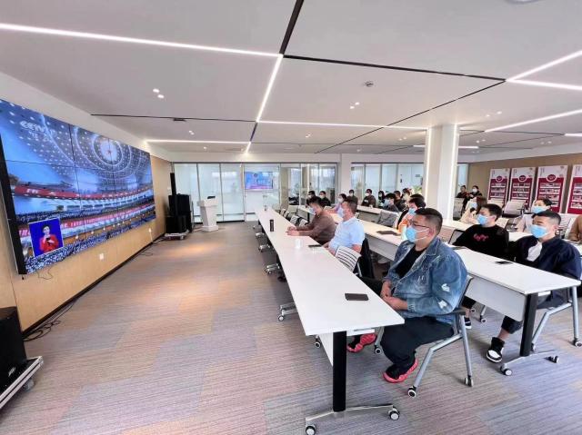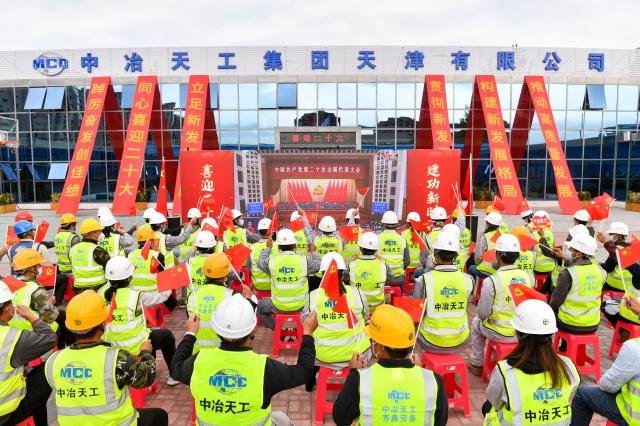 驻津央企中冶天工集团员工收听收看大会开幕盛况。 周伟 摄