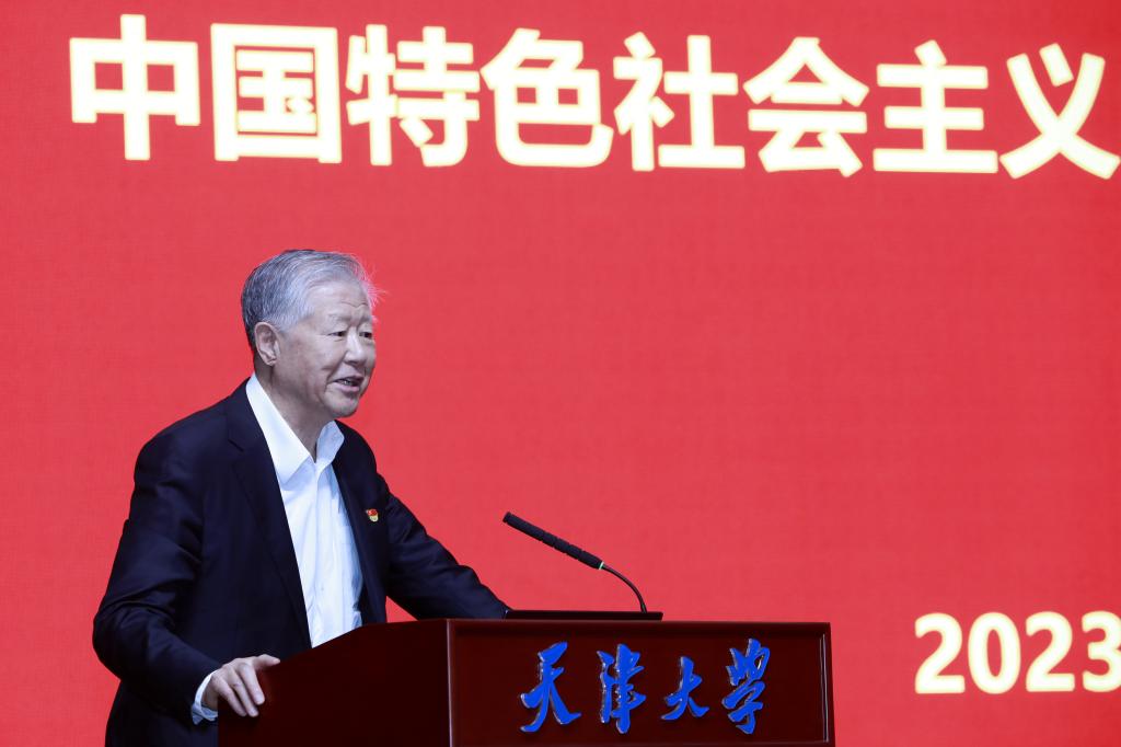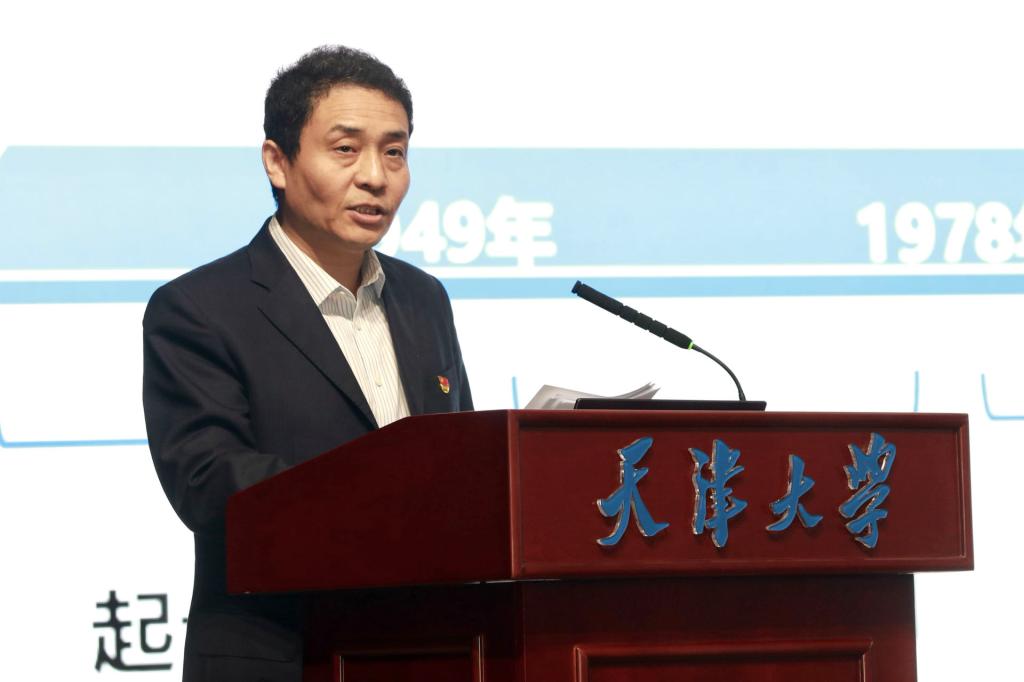 天津大学智能电网团队骨干教师、自动化学院贾宏杰教授作题为《传承家国情怀矢志立德树人助力实现高水平科技自立自强》的主题报告。贾宏杰深情讲述了从徐庆春教授、余贻鑫院士再到王成山院士,三代名师带领团队始终将个人科研与国家产业需求紧紧地结合在一起的生动故事,展现了团队传承炽热的家国情怀、传承立德树人的大爱、传承勇攀科技高峰的韧劲、传承将论文写在祖国大地的坚守的感人事迹,精彩的报告不时赢得现场师生的热烈掌声。