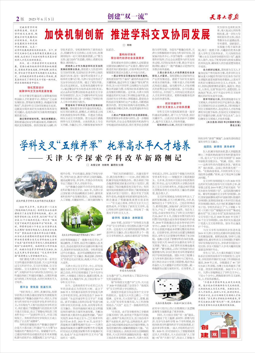 ●学科交叉“五维并举”托举高水平人才培养———天津大学探索学科改革新路侧记