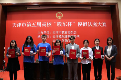 5月27日,天津市第五届高校“敬东杯”模拟法庭大赛决赛在卫津路校区科学图书馆二层报告厅成功举办。出席本次比赛的嘉宾有:天津市教育委员会副主任徐广宇,天津大学党委常委、宣传部部长杨欢,天津大学法学院院长孙佑海,天津大学法学院党委书记李明,全国人大常委会法工委办公室人事处处长、天津市和平区小白楼街道党工委副书记(挂职)张晓莹,教育部全国青少年法治教育中心办公室主任张薇薇,天津市教育委员会法制处处长邢建涛,天津市教育委员会法律顾问、市教育科学研究院教育法治与评估研究所所长、研究员方芳,天津市教育委员会法律顾问、天津唯睿律师事务所主任袁宏伟,天津敬东律师事务所主任罗承菊,天津敬东律师事务所副主任王静等。