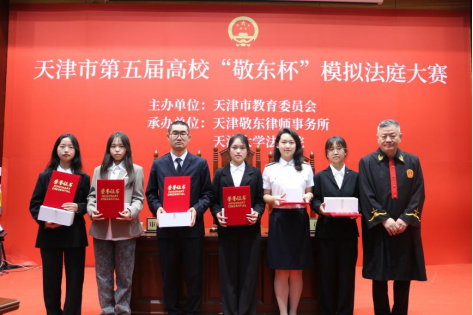 本站讯(通讯员 付常辉 王新华 摄影 代一然 李昊佳)为深入贯彻落实习近平法治思想,落实中共中央办公厅国务院办公厅《关于加强新时代法学教育和法学理论研究的意见》,提高学生的创新实践能力和综合运用法律知识的能力,为国家输送更多的优秀法治人才和具备良好法律素养的各类人才,由天津市教育委员会主办,天津大学法学院和天津敬东律师事务所承办的天津市第五届高校“敬东杯”模拟法庭大赛在天津大学成功举办。