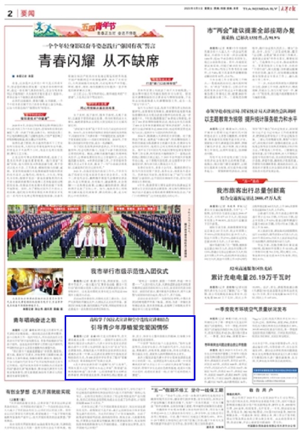 此次主题宣讲是天津大学学生党史宣讲团走进中小学的第一站。宣讲团还将与咸水沽第一中学团委共同开展“大手拉小手──讲好天津故事”主题系列宣讲,带领中学生走进红色教育基地、走进乡村振兴示范村、走进社区基层一线,打造“行走的思政大课堂”。
