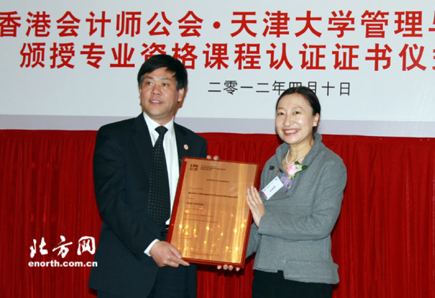 2012年4月10日,天津大学财务管理专业通过香港会计师公会(HKICPA,The Hong Kong Institute of Certified Public Accountants)专业资格课程(QP)认证。天津大学是首批通过认证的内地高校之一,标志着天津大学财务管理课程的课程体系、内容和师资等各方面,均已达到国际水平。