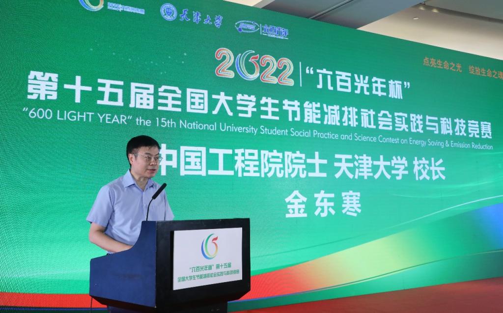 金东寒致开幕辞。他首先表达了对参会领导、专家和各高校参赛师生的欢迎。他表示,节能减排是党中央、国务院作出的重大决策部署,是立足新发展阶段、贯彻新发展理念、构建新发展格局,推动经济社会发展全面绿色转型的重要举措。作为“节能减排学校行动计划”的重要内容,“全国大学生节能减排社会实践与科技竞赛”历经十五载,已经成为全国颇具导向性、示范性和影响力的大学生科技竞赛之一。本次大赛是贯彻落实习近平总书记和党中央决策部署的具体行动,也是提升青年学子自主创新能力的生动实践。大赛为高校学子搭建了互动交流的平台,提供了展示自我的机会,更是对每一位参赛学子能力与素质的全面检验。他衷心希望在挖掘优秀作品的同时,参赛师生能通过大赛增长见识、开阔眼界,将专业所学融会贯通、学以致用,为推动经济社会绿色转型、促进高质量发展贡献智慧和力量。同时,希望更多企业关注人才培养,为学生科技创新提供资源和平台,积极参与创新创业教育改革,为青年学生的成长成才开辟更广阔的天地。