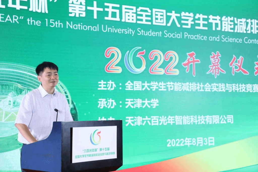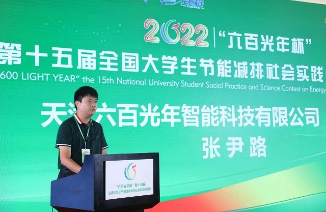 张尹路在开幕致辞中对天津六百光年智能科技有限公司进行了介绍。他表示,企业作为社会的重要组成部分,有责任为社会发展贡献公益力量。他希望今后可与广大致力“节能减排、绿色能源”的有志青年携手,不仅在技术上追求创新,在管理思想上更要追求价值凝练,为中国的“3060”目标奉献自己的能量。