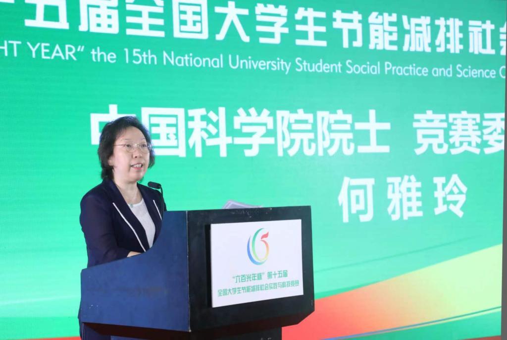 何雅玲致开幕辞。她表示,创新是一个民族和国家的希望所在。节能减排竞赛自开办以来,创新一直就是孜孜追求的目标,大学生是创新的生力军,应该发挥自己应有的作用。她介绍了本届大赛在组织、宣传、传承和发扬方面形成的三大特色:一是凝练精神文化,彰显价值追求:大赛凝练出“节能减排,主动作为;实践创新,交融育人”,并以“点亮生命之光,绽放生命之魂”为主线,贯穿大赛始终和所有环节。同时衍生了吉祥物、主题曲、科普出版物等文化产品。将科技活动与历史及人文价值关联起来,扩大了社会影响力。二是创新组织模式,践行服务理念:本届大赛进行了一系列的活动方案创新,如设立社会实践调查类单独赛道、境外高校以及企业奖等单独赛道等。三是鼓励学科交叉、携手交融育人:大赛鼓励学科交叉、产学结合,引导各方力量聚焦大赛主题,切实践行“交融育人”。她号召青年人要有时不我待的紧迫感和舍我其谁的责任感,努力学习,积极实践,努力使自己成为国家的栋梁人才,把自己的青春奋斗融汇进我国创新发展的伟大事业中。