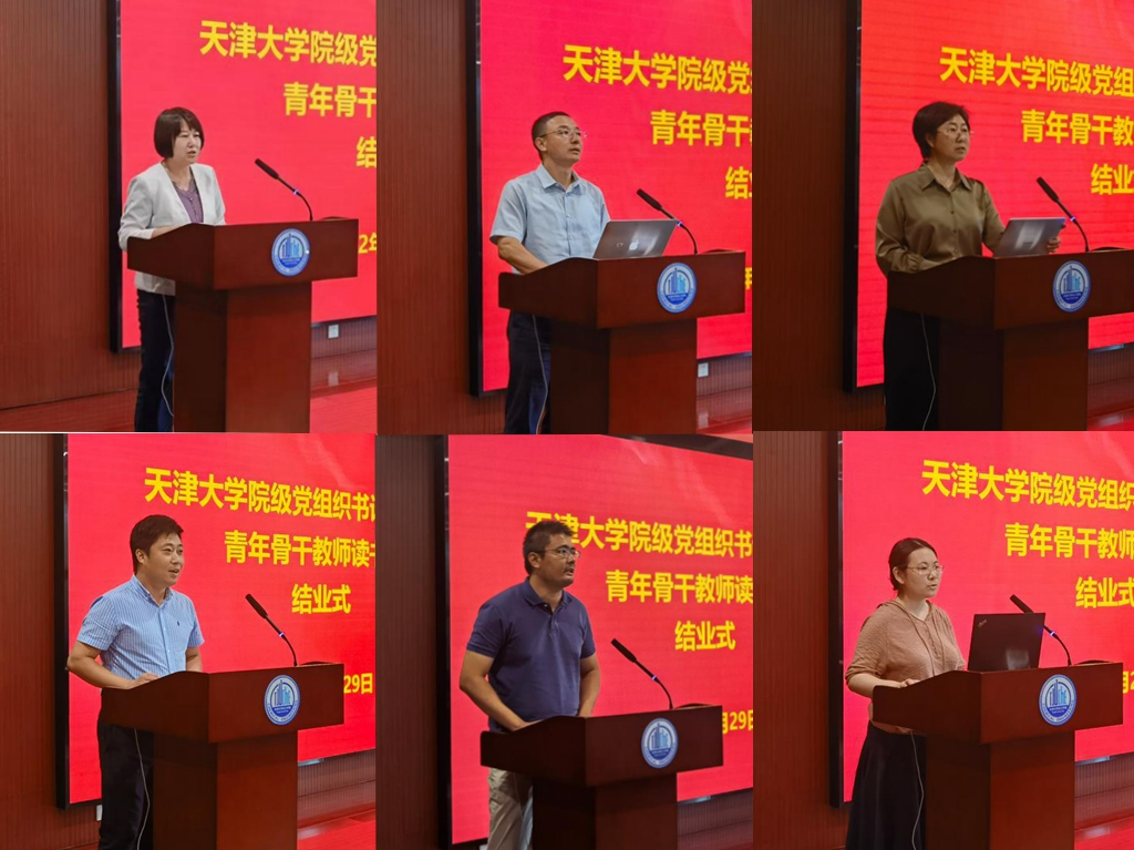 在结业式上,校团委书记管虹、医学部党委书记李振宇、环境学院党委书记刘洪波,材料学院教师刘辉、经管学部教师冯海洋、自动化学院教师穆朝絮作为学员代表分享了分组讨论成果以及学习的收获和感悟。此外,青年骨干教师读书班还组织了结业测试,检验学员对学校事业发展的思考和对“大先生”的理解,旨在教育引导青年教师心怀“国之大者”,矢志爱国奋斗、锐意开拓创新,为建设中国特色、天大品格的世界一流大学贡献力量。