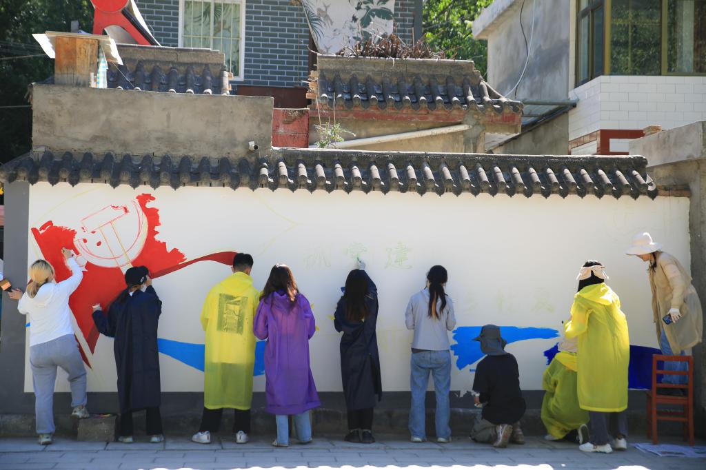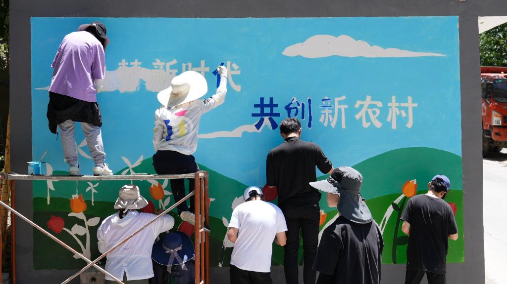 本站讯(通讯员焦德芳、李晴)在甘肃省宕昌县官亭镇,劳作一天的乡亲们不着急回家,而是聚在高高的院墙下驻足围观、啧啧称赞——村里原本光秃秃的墙体来了个“大变样”,蓝天绿水青山跃然壁间,让人精神一振、耳目一新。天津大学智算学部宕绘青春实践队来到这里开展暑期实践,用墙绘打造高颜值美丽乡村,用大学生的才思和妙笔助力乡村振兴。