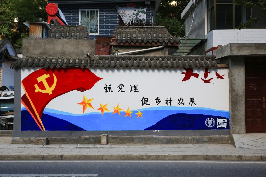 文化墙绘是一道聚力乡风文明、助推乡村振兴的风景线。天大学子顶着高温酷暑,对接需求、设计画稿、实地考察、起稿上色,创作出300余平方米的墙绘,让宕昌县王家村、邓桥村和车拉九年制学校的墙体“改头换面”。这些墙绘围绕“乡村振兴”、“喜迎二十大”、“人居环境”、“教育发展”等主题——鲜艳的党旗高高飘扬、喜悦的农民收获果实、天真的孩童笑脸灿烂……当地村民都对这些精美的画作交口称赞:“谢谢娃子们把咱这墙院画得这么漂亮,欢迎你们常来!”