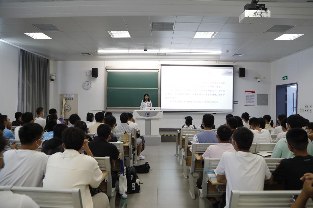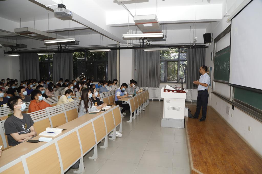 “稻花香里说丰年,听取蛙声一片——寥寥几句诗,一片自然和谐共生的景象浮现脑海。在人类历史发展进程中,人们越来越清晰认识到,经济社会快速发展决不能以环境的破坏、资源的浪费为代价。面对如何解决经济发展与环境保护兼顾的问题,早在十几年前,习近平总书记就提出了‘绿水青山就是金山银山’的理念。”化工学院吴松海老师的《化工原理》有近百名学生线下听讲。这是一门关于化学加工过程的技术基础课,它为过程工业(包括化工、轻工、医药、食品、环境、材料、冶金等工业部门)提供科学基础,对化工及相近学科的发展起支撑作用。“化工事关生态环境和国家安全,我希望能把知识讲活讲透,在传授知识和理论的同时,也让同学们更加增添家国情怀的责任感!”