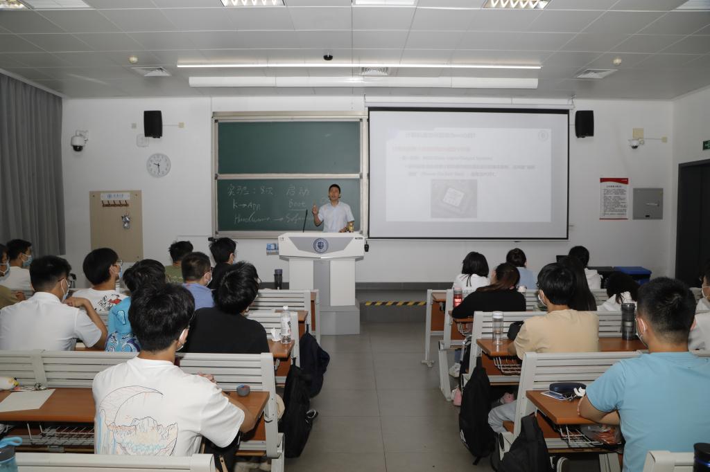 “操作系统被称为信息产业的‘灵魂’,操作系统的自主可控是网络强国的关键基石。”在45教学楼,智算学部邱铁老师正在给同学们讲授本学期第一堂《操作系统原理》 。这是计算机科学与技术专业一门重要的专业基础必修课,主要讲述影响设计计算机系统中最基本的系统软件——操作系统的各种因素及实际操作。这一课,邱铁主要给同学们讲解了操作系统基础知识及功能。“你们可以从这门课上学到许多软件设计的思想和技术方法,我希望通过学习课程,同学们不仅了解操作系统的使用,更了解它的设计和实现,从而掌握其工作原理。”