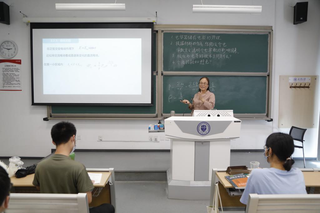 “这门课能够使同学们了解材料在各个领域里的重要作用,掌握对材料不同的物理性能的获得及改进的方法和手段,从而打开认识材料、分析材料及应用材料的大门。”材料学院马卫兵老师的《材料物理性能》课程是材料科学与工程专业(金属、无机和高分子各方向)本科生的必修专业核心课程,也是功能材料研究的必备知识。面对线上线下课堂的50名同学,马老师从智能手机、智能汽车对电介质材料的应用谈起,“让大家明白科研报国的内涵,懂得自己现在的所学和我们国家的科技发展、国计民生息息相关。”