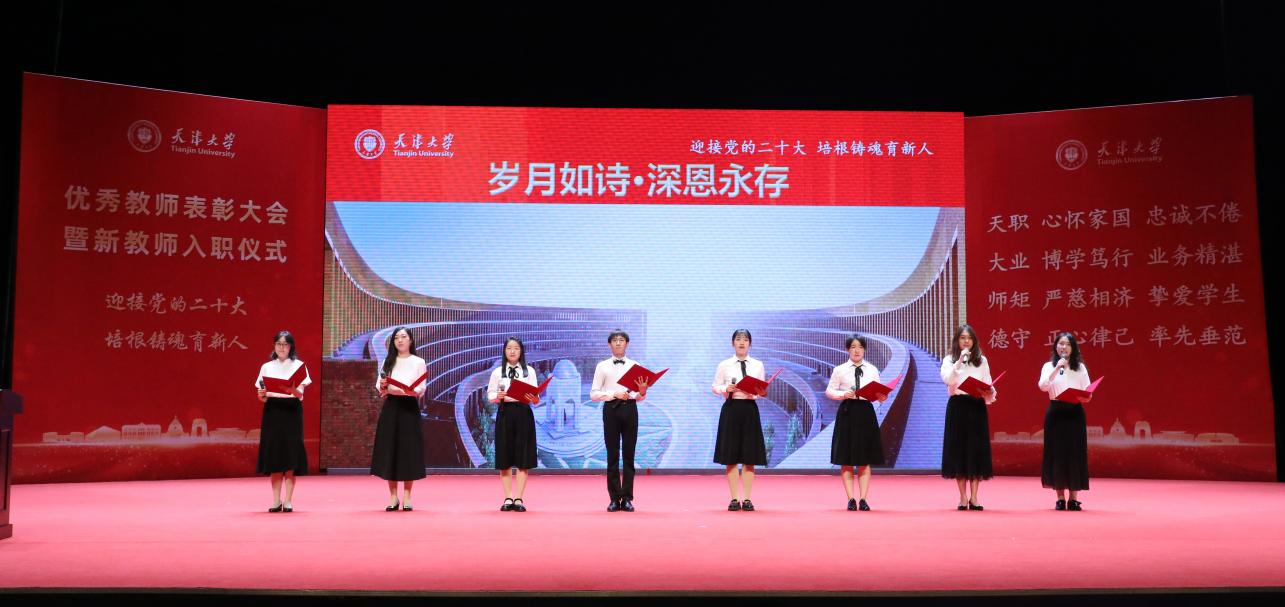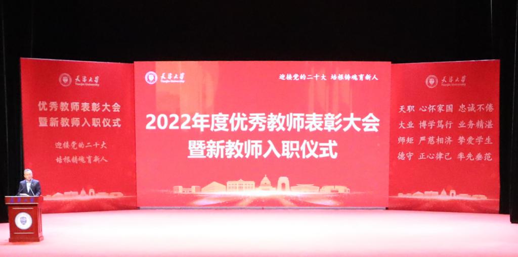 本站讯(通讯员 韩晓萌 摄影 唐蒙)10月4日下午,“迎接党的二十大 培根铸魂育新人”2022年天津大学优秀教师表彰大会暨新教师入职仪式在北洋园校区召开,隆重表彰一年以来取得优异成绩的集体和个人。同时,学校首次将新教师入职仪式与表彰大会一同举办,以铮铮誓言见证教育初心。