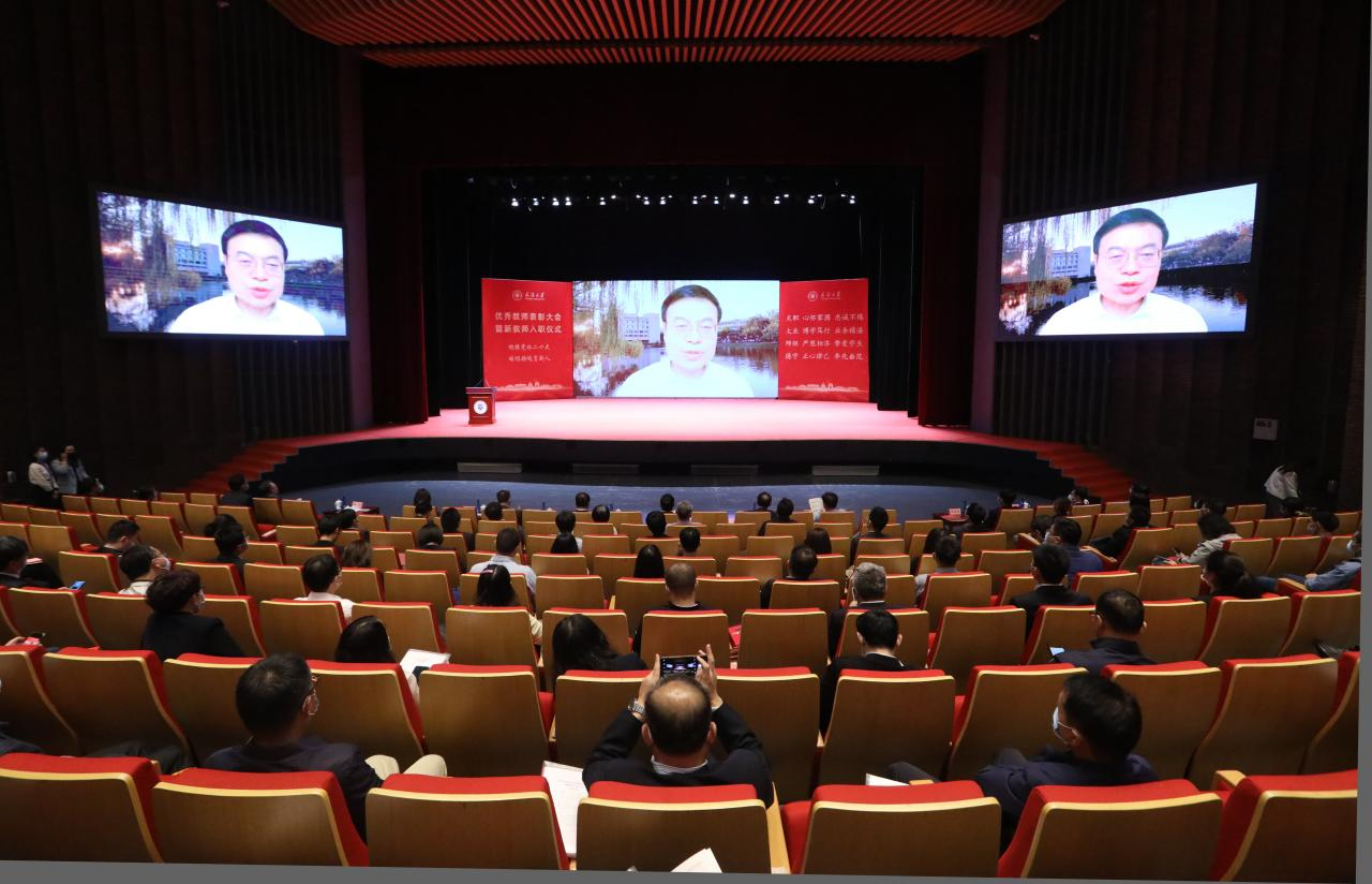 大会在校歌中落下帷幕。综合考虑疫情防控形势要求,本次大会采取线下线上相结合的方式开展,将作为新入职教师培训的必修课程。学校机关部处负责人、各学院负责人、获奖教师代表,教工党支部书记代表,机关科级干部代表以及2021年9月以来新入职教职工代表等近300名教职工参加大会。