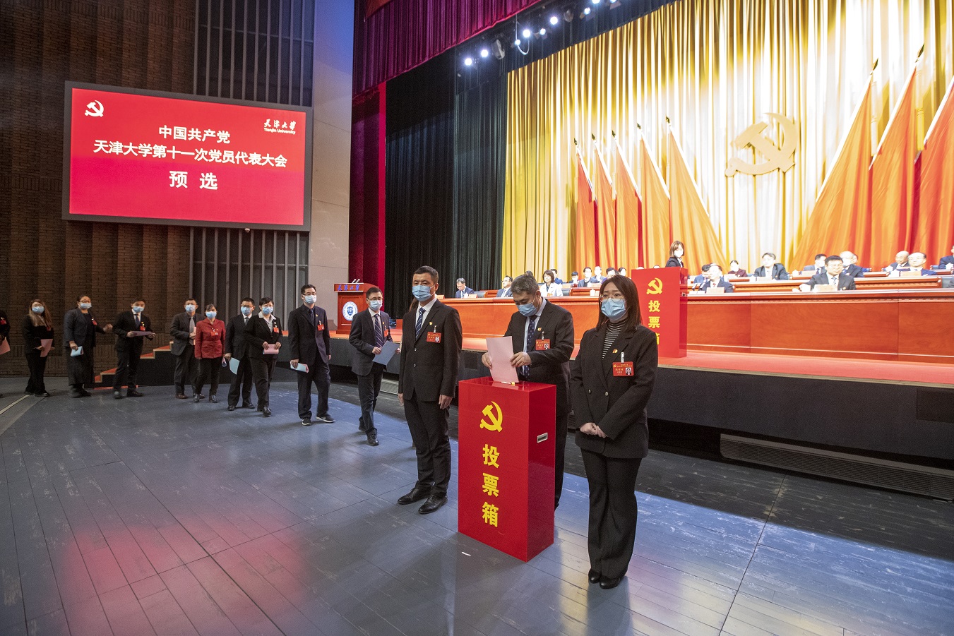 大会以书面形式向与会代表下发中共天津大学纪律检查委员会工作报告。开幕会后,全体代表审议了《中国共产党天津大学第十一次党员代表大会选举办法(草案)》,通过了总监票人、监票人名单,并举行“两委”委员候选人预选。