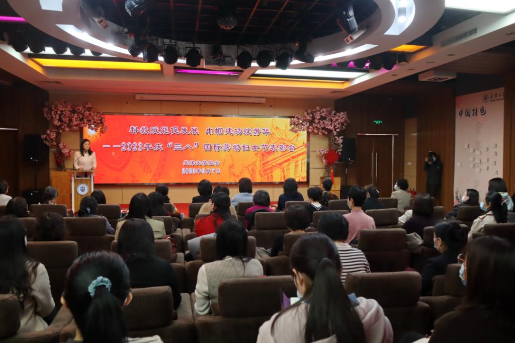 本站讯(通讯员温锌勇、于婧、刘甜 图片滕达、王训斋)科教赋能促发展,巾帼建功绽芳华。3月7日下午,天津大学2023年庆“三八”国际劳动妇女节表彰大会在卫津路校区教职工文化活动中心举行。天津大学党委副书记雷鸣,天津大学党委常委、统战部长张俊艳,天津大学女教授协会会长傅利平等出席大会。荣获各级荣誉称号的先进女教职工代表,学校女工委委员、女教授协会理事、女科协成员代表等参加会议。此次表彰会首次由工会、团委协同组织,邀请部分优秀女学生代表现场交流互动。天津大学工会常务副主席马桂秋主持会议。