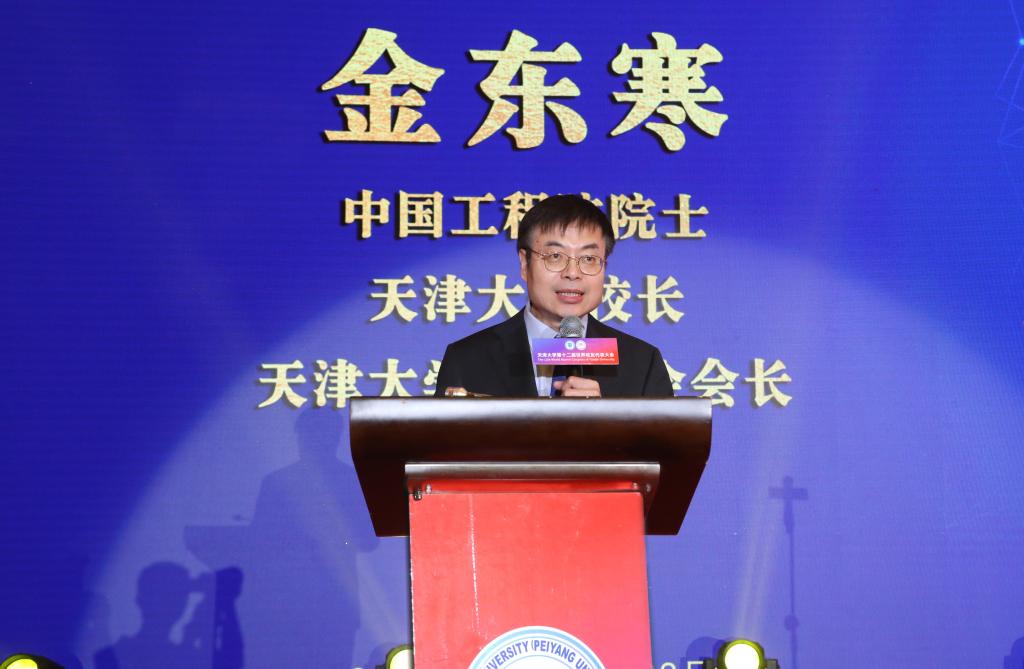 金东寒以“凝心聚力、矢志一流,奋力开创中国特色、世界一流大学建设新局面”为主题,向与会校友报告了自2017年第十一届世界校友代表大会以来天津大学各项事业发展情况。学校落实立德树人根本任务,人才培养质量不断提高,高素质师资队伍日益壮大,综合性学科生态持续优化,科技创新能力显著增强,国际化办学水平稳步提升,校园文化日趋繁荣,加快推进中国特色、天大品格的世界一流大学建设,顺利实现“新三步走”战略第一步战略目标,在高质量发展道路上迈出坚实步伐。金东寒指出,天津大学自创立之初就以“兴学强国”为己任,站在新的历史起点,学校将坚定不移以党的二十大精神为指引,奋力开创中国特色、天大品格的世界一流大学建设新局面,为全面建设社会主义现代化国家、全面推进中华民族伟大复兴作出新的更大的贡献!