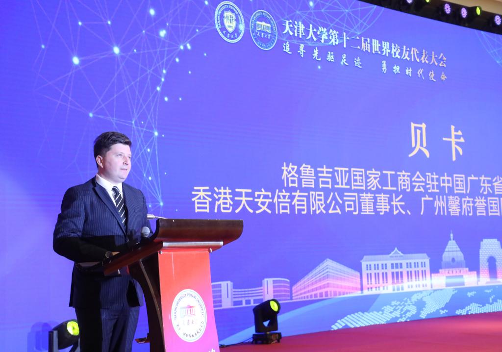 天津大学2001级汉语言专业校友、来自格鲁吉亚的贝卡分享了自己在天津大学求学生涯的点点滴滴。贝卡从天大毕业后开始了自己的创业之路,在格鲁吉亚和中国成立了“格鲁吉亚一带一路商务馆”,这是格鲁吉亚唯一在中国正式备案的非政府组织。“今天,能够与来自世界各地的天大校友坐在一起,我心潮澎湃!我也衷心希望母校与‘一带一路’各国在教育、科技等领域开展更多合作,培养更多人才!”