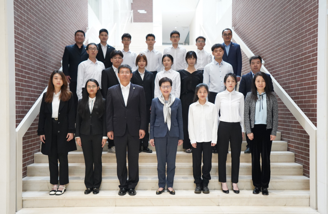 (记者刘延俊 摄影王建泽、刘延俊)5月17日,香港特别行政区前任行政长官林郑月娥女士到访天津大学并与学生交流互动。
