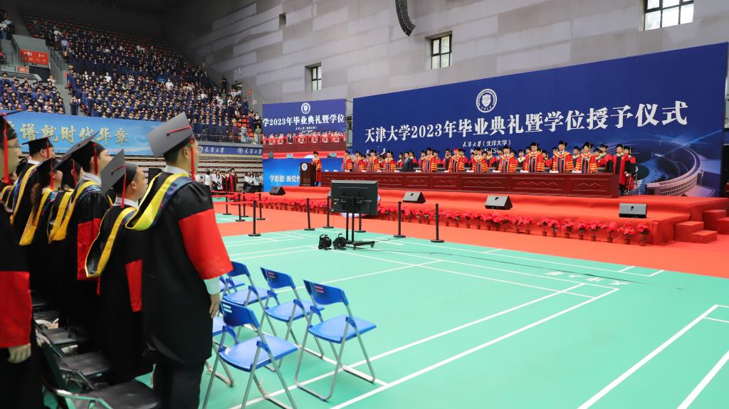 本站讯(记者刘晓艳 摄影于晓金 刘延俊)2023年6月20日,天津大学2023年研究生毕业典礼暨学位授予仪式在卫津路校区体育馆举行。这一天,516名博士、3194名硕士毕业生圆满完成学业,开启新的科研和生活之路。与此同时,2020-2022届受疫情影响未能现场参加学校毕业典礼的106名博士和374名硕士也再次回到母校补上最后一课。