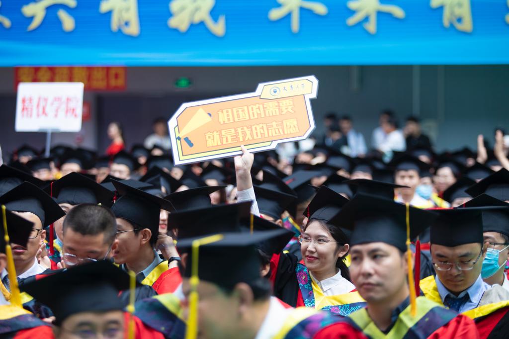 化工学院教授姜忠义作为导师代表发言。他和毕业生们分享了三个词:格局、智慧、行动。有了天大的格局,就有了强国有我的担当、勇毅前行的方向、守正创新的根魂、开创未来的能量;有了天大的智慧,就有了开放包容的气场、我将无我的涵养、谦虚谨慎的基因、善于斗争的雅量;有了天大的行动,就有了乘风破浪的远航、超越平凡的翅膀、舍我其谁的底蕴、战胜一切的力量。