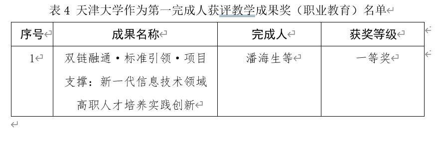 表4天津大学作为第一完成人获评教学成果奖(职业教育)名单