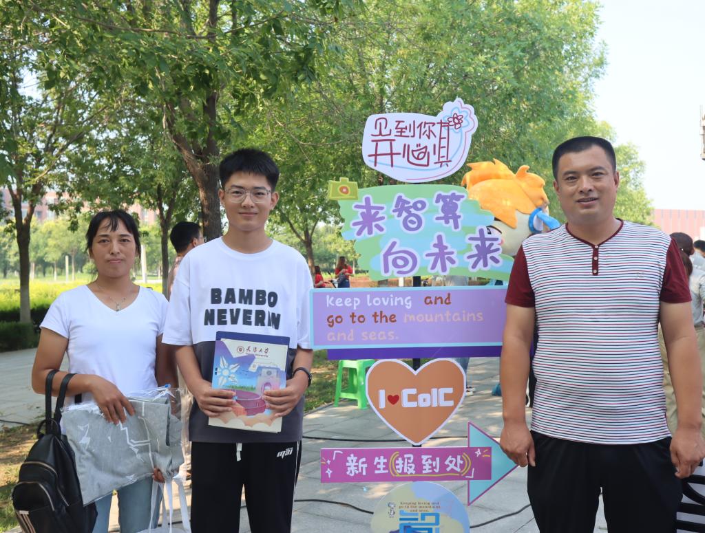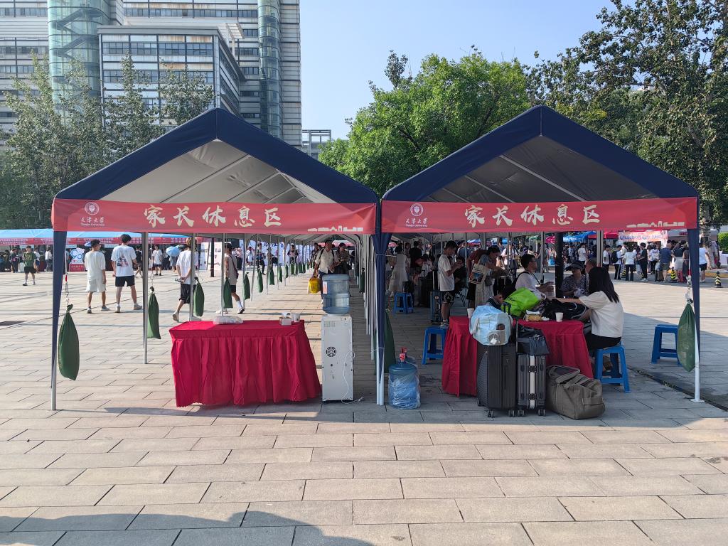 “热烈欢迎你,2023级新天大人!”醒目的迎新标语妆点校园。为了方便来自全国各地的同学顺利来校报到,学校在天津站、天津西站、天津南站、天津机场均设立迎新接待站,2023级新生可以直接乘坐学校安排的大客车抵达校园。与此同时,今年各位新生家长可凭录取通知书与新生一同入校,学校提前做好预案,对于校内交通做好管控措施,有序引导自驾来校报到的车辆在校内的通行和停放。为了让同学和家长们“少跑腿”,学校在双校区迎新通道和主要点位安排了一批摆渡车辆,还组织了学生志愿者全程引导帮助新同学搬运行李、办理手续,保证2023级新生入校舒心顺心,同时也让各位家长安心放心。