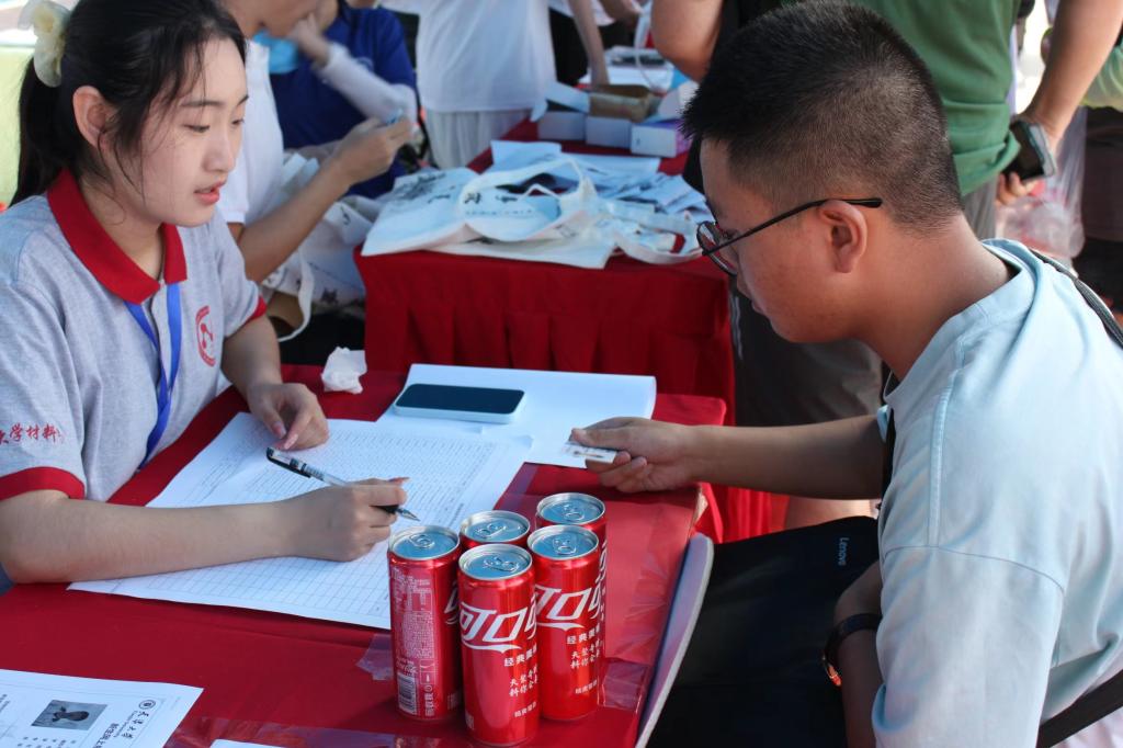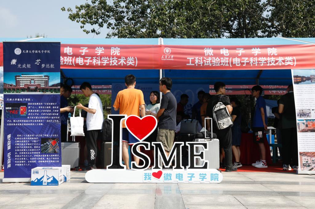 “迎新布置考虑周详,志愿者服务保障给力!”在化工学院工科试验班迎新点位,来自化工学院领军班的新生李珍颖和她的父母对迎新工作竖起了大拇指,在学院提前准备的个人报到相册上写下对自己的寄语,用签了自己名字的乐高积木共同助力拼凑出一幅巨大完整的学院标志……新生们一入学就感受到了浓浓的关怀与祝福。材料科学与工程学院工科试验班在迎新帐篷里满满码上了“天聚奇‘材’!‘料’你会来!”的定制可乐,让新生在享受清爽的同时更感受到浓浓的欢迎情谊。“去所有食堂打卡”、“去智算学部认识一位新同学”、“去图书馆”……社会科学试验班的报到帐篷里,为每位新同学们都随机准备了入学的第一件“任务”,辅导员张鹏越说:“我们希望通过这样的形式,让新同学们能够快速‘破冰’,快速融入到校园生活中来。”智能与计算学部工科试验班的迎新帐篷里,除了有为新生准备的相关的文创纪念品,每位来报道的新生都能得到来自学部动画专业的学长学姐们为他们创作的个人专属漫画头像。经管学部在北洋广场布置了迎新展板和经管榜样展板,同榜样合照,向榜样出发,与榜样同行,2023级新生可以与展板合照,记录下青春的精彩时刻,同时新生同学也可以在展板上签名,在经管学部留下自己的“经”彩印记。建筑学院围绕全“星”计划推出了“星”系列手提袋、鼠标袋等精美的文创。不仅如此,在迎新处,每一位新生都会亲手摘下写着自己名字的星星。“通过这样的方式,不仅让新生们更加充分地了解天大特色,还增进了同学们对学校和学院的归属感和认同感,让新同学们更爱天大爱建筑学院。”建筑学院新生辅导员杨紫欣说。精密仪器与光电子工程学院除了为2023级的新生推荐经典的图书电影,还为他们设计了专属的2023级徽章,希望点亮2023级新同学的精神世界,让他们能勇往直前,在大学这个新平台,运用学到的知识,解决困难,探索未知。电气自动化与信息工程学院结合建院90周年的元素,设计了学院背景墙和文创礼包,让新同学们在入学就感受到学院的悠久历史和底蕴。 “海鸥何事更相疑”来自安徽的人文科学实验班一班的汪子贺在迎新帐篷里,写下了自己最爱的一句诗,他觉得:“这句诗所表达的与世无争的心境与实事求是、严谨治学的天津大学最相匹配”。他的父母兴奋的说:“天津大学有很好的历史底蕴,今天来到学校,校园环境优美,把孩子送到这里读书我们都很放心。”