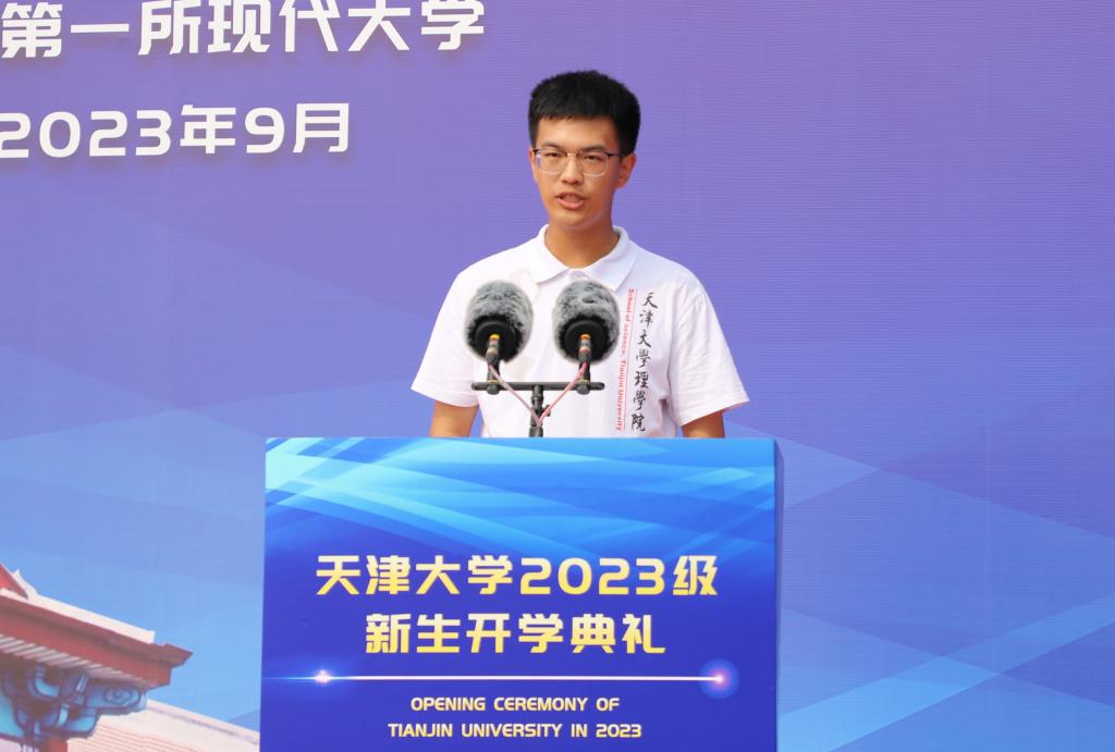 本站讯(记者赵晖 实习生刘绎如)他是“天”选之子。对,他就是幸运地收到天津大学2023年001号录取通知书的新生吴文宇。9月5日在天津大学开学典礼上,吴文宇作为新生代表发言:只争朝夕,青春奋斗,接过民族复兴的接力棒。