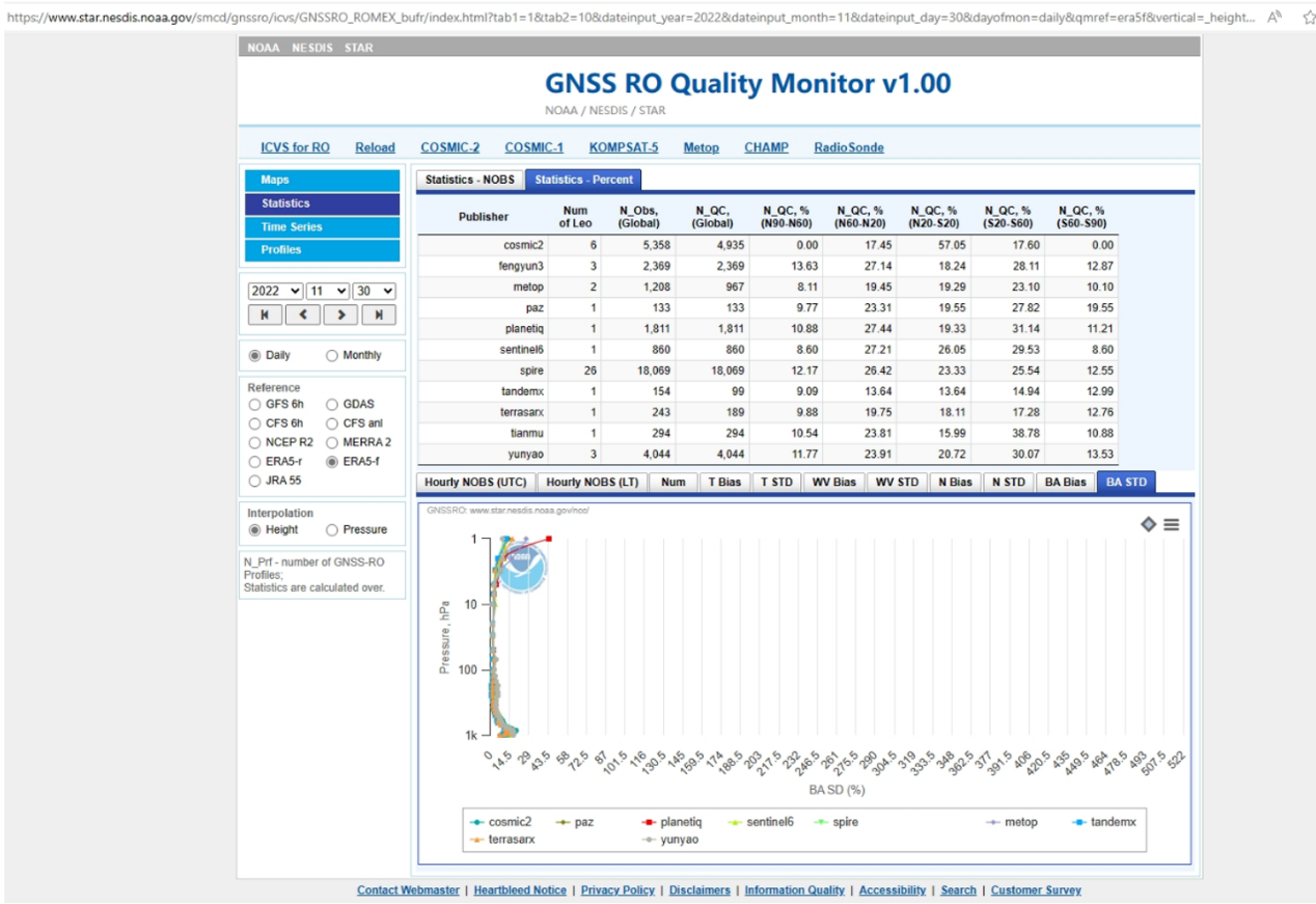 天津云遥宇航科技有限公司作为中国唯一一家民营商业气象数据提供商受邀参与。近日,根据国际权威专家的评测结果,云遥宇航的掩星数据在整个0~60km高度层上有较小的标准差,产品质量达到COSMIC2、Metop和PAZ等气象卫星世界先进水平,并具有相比SPIRE、PlanetIQ和GeoOptics等商业化小型气象卫星以及COSMIC2有更优的30km以上区域探测能力。
