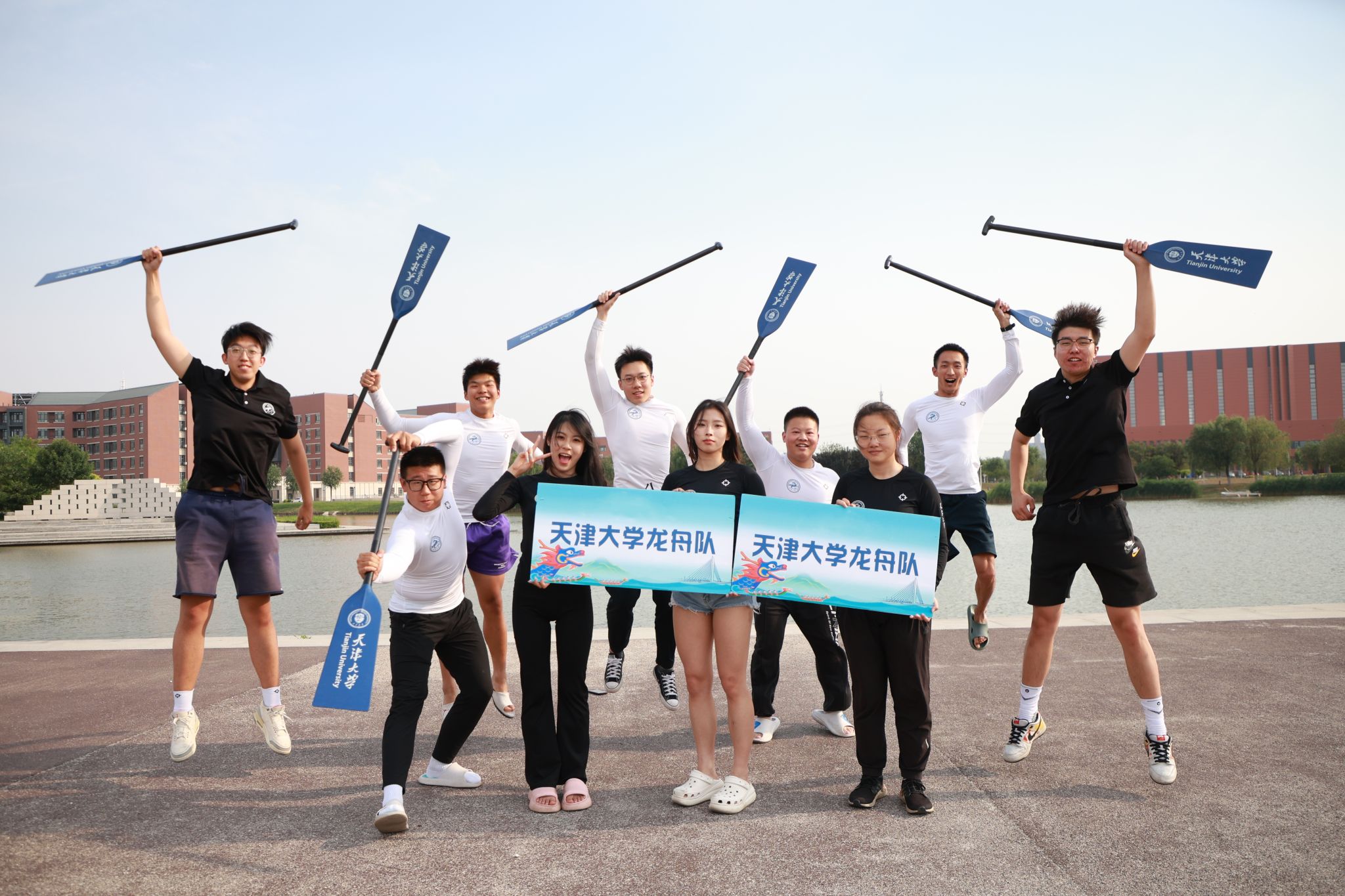 天津大学龙舟队是个多民族的大家庭:队里有几十名少数民族学生,他们有男有女,来自藏、彝、维吾尔、土家、羌、苗、蒙古、满、柯尔克孜、回、哈萨克、东乡等东西南北各个民族。“在天津大学,龙舟像一条精神的纽带,将不同地域、不同民族的学生汇聚在一起,用体育的独特魅力浇灌出民族团结进步的青春动力。”龙舟队教练于楠老师说。