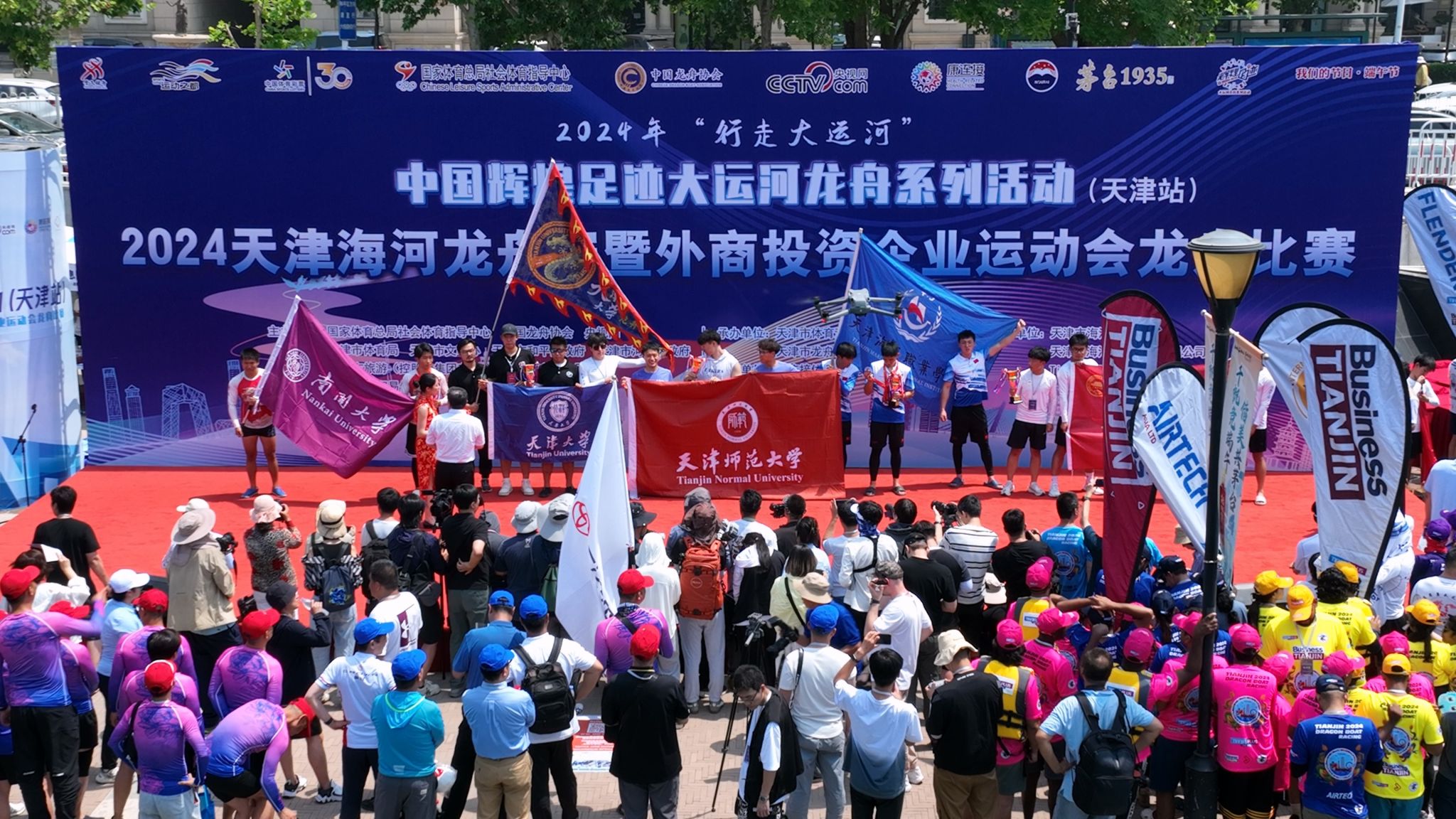 本站讯(记者 焦德芳)“舟行四海,龙腾北洋!”——6月10日端午节,海河之上波光粼粼,龙舟健儿呐喊喧天。天津大学龙舟队在2024天津海河龙舟赛中荣获混合组第二名,男子组第四名,并在“天津大学、南开大学友谊对抗赛”环节荣获男子组第一名、混合组第二名。