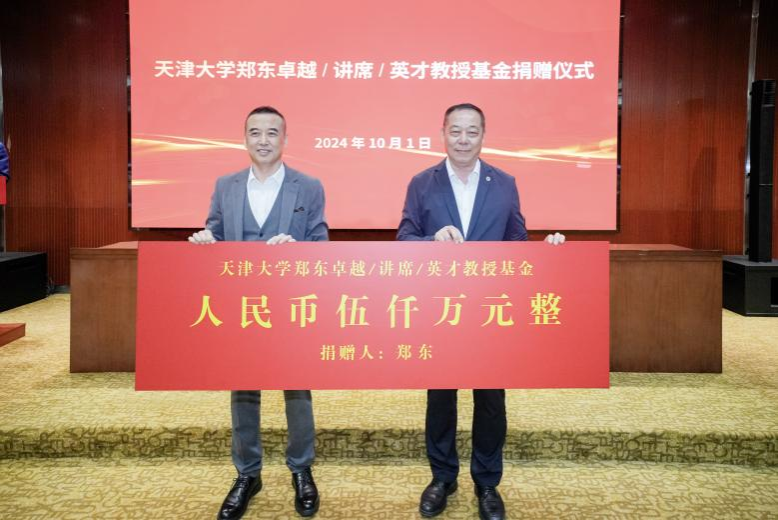 据悉,1988年郑东考入天津大学化学工程专业,在校期间品学兼优,被发展为该届首批学生党员。毕业后他先后供职于国有大型企业和大型商业企业,1994年开始投身风险投资领域,搏击在经济建设主战场。郑东校友始终认为自己在事业上的发展得益于母校多年的培养与关怀,一直希望能够回报母校。此前,郑东校友在天津大学建校119周年之际,向母校捐赠5000万元教育基金用于支持天津大学新校区图书馆的建设,由此深受师生喜爱的“郑东图书馆”顺利落成,这座北洋园校区的标志性建筑,被师生亲切地称为“最美图书馆”,成为了天大人的精神家园和文化高地。除此之外,郑东校友多年来全力支持母校人才培养工作,自2010年起在天津大学捐资设立“郑东助学金”,鼓励并支持学生个性发展,至今已帮助700余名青年学子成长成才。