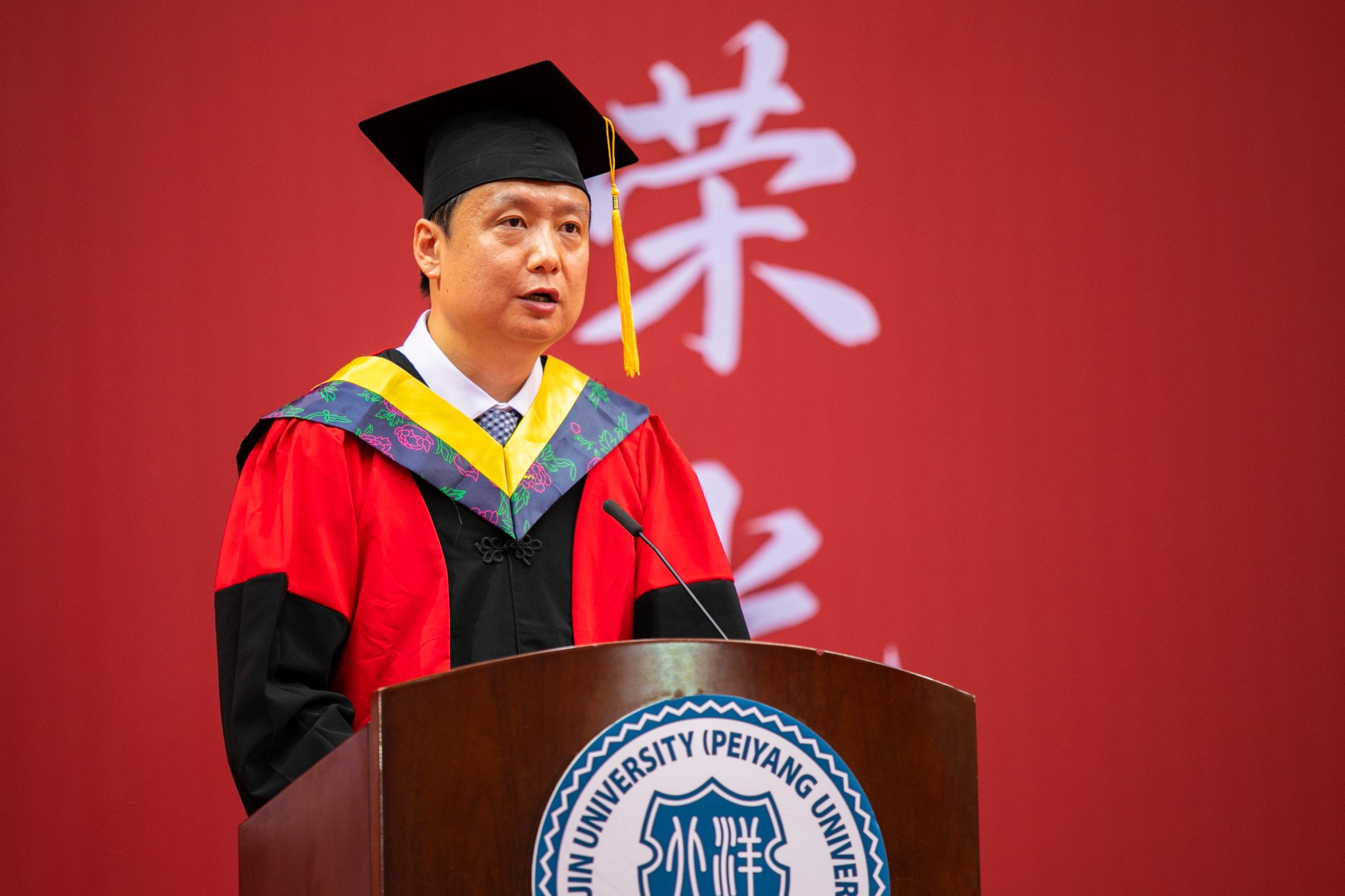 天津大学在津校领导、部分院士专家、各学院领导、学位评定委员会委员、教师代表、辅导员以及机关部处负责同志参加。典礼由天津大学党委常委、副校长李斌主持。