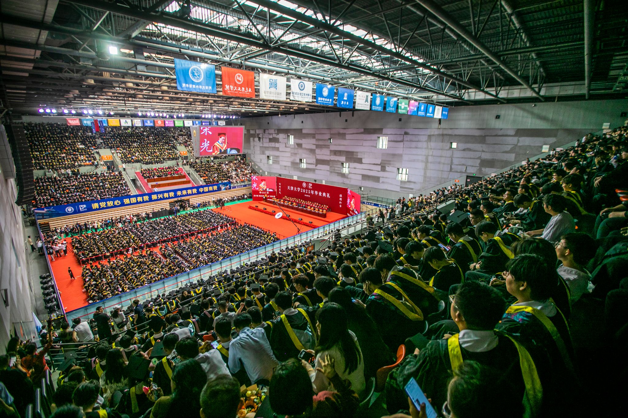 7月5日,天津大学在卫津路校区体育馆举行2025年本科生毕业典礼暨学位授予仪式,天大师生与亲朋好友共享毕业的喜悦。