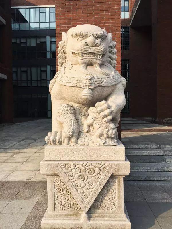 这对新石狮雕像采用泉州白G3506天然花岗岩,基座长1.895米,宽1.20米,寄意母校创办于1895年,此为献礼母校120年华诞;石狮身高1.93米,总高2.93米,以鲁班尺寸吉祥数为标准。