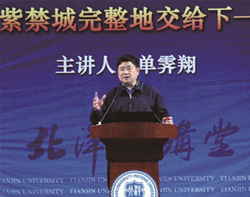 故宫博物院院长单霁翔2013年10月13日,北京故宫博物院院长单霁翔先生做客“北洋大讲堂”,在天津大学新体育馆内为三千余名师生带来一场关于故宫的精彩讲座。讲座中单先生先以图片展示的方式详细介绍了故宫博物院的现状:“那些经历时光雕刻的彩绘、宏伟肃穆的建筑、庄重的格局都是珍贵的文化资源。”随后,又对“如何把故宫完整的交给下一个六百年”进行了严肃而认真的阐述:“与媒体坦诚沟通、与高校展开合作、与世界各博物馆共同展览,让紫禁城从‘故宫’走向‘故宫博物院’。”单先生和他的团队从前辈手中接过了雄伟壮阔的故宫,也时刻在为它的建设和发展殚精竭虑。