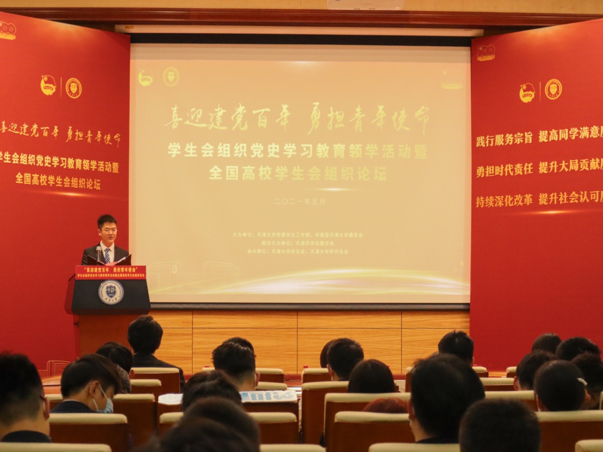 5月1日,“喜迎建党百年,勇担青年使命”学生会组织党史学习教育领学活动暨全国高校学生会组织论坛在天津大学举行,来自清华大学、上海交通大学等全国33所高校学生会、研究生会的代表们齐聚天大,共同学党史、悟思想,加强新时代高校学生会组织的建设水平,更好地团结引领广大青年同学成为堪当民族复兴重任的时代新人,用扎实成绩庆祝建党100周年。