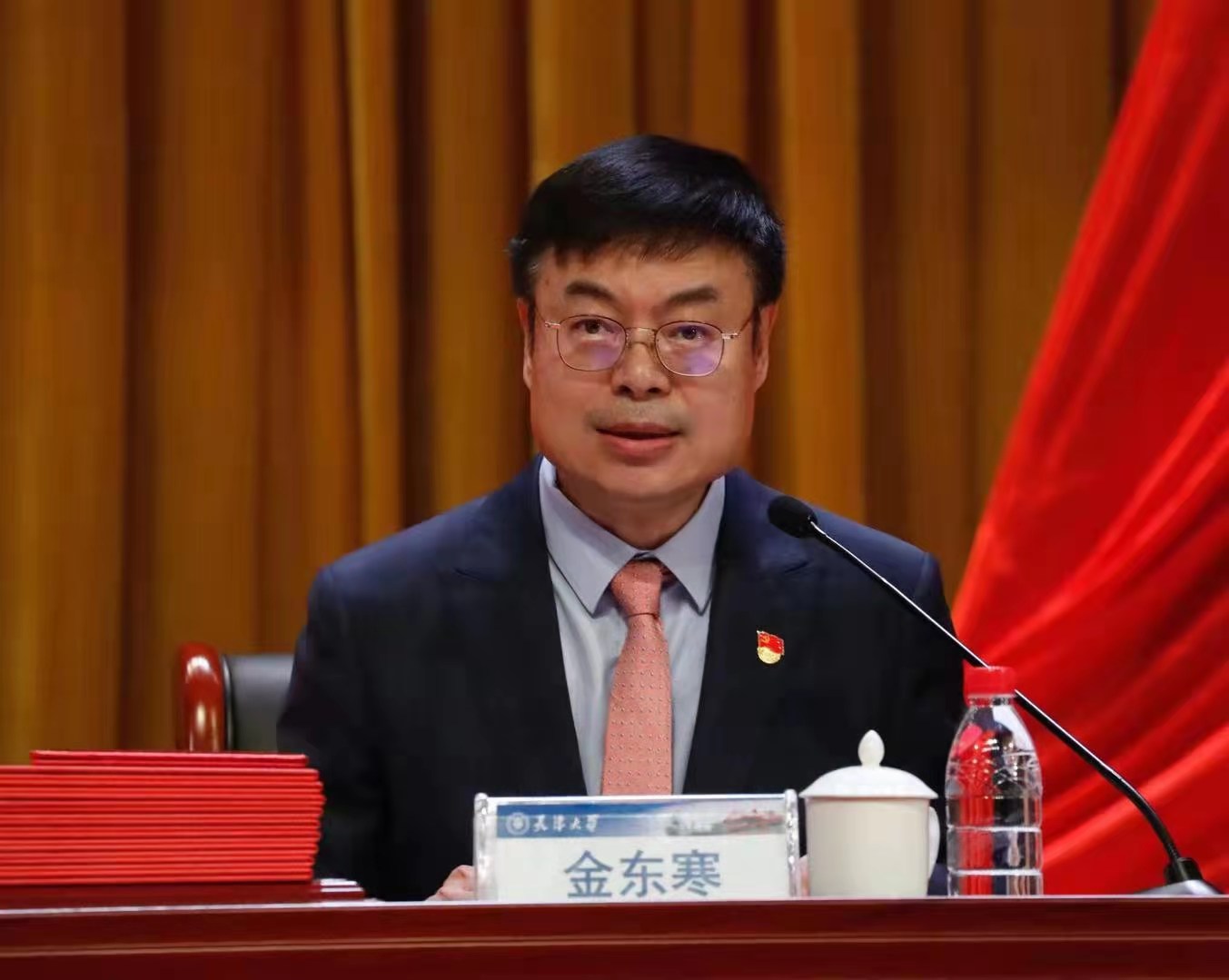 金东寒在主持大会时指出,在中国共产党成立100周年即将到来之际,召开天津大学“两优一先”表彰大会,是为了表彰全校在人才培养、科学研究、管理服务、党的建设等各项工作中作出突出贡献的优秀共产党员、优秀党务工作者和先进基层党组织,激励全校党员传承红色基因,汲取奋进力量,奋发有为,勇创一流。
